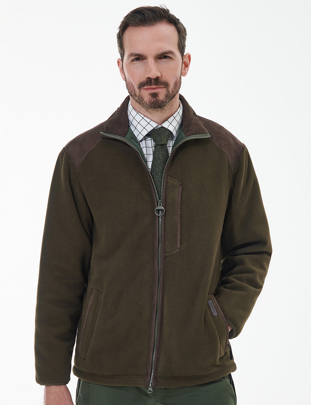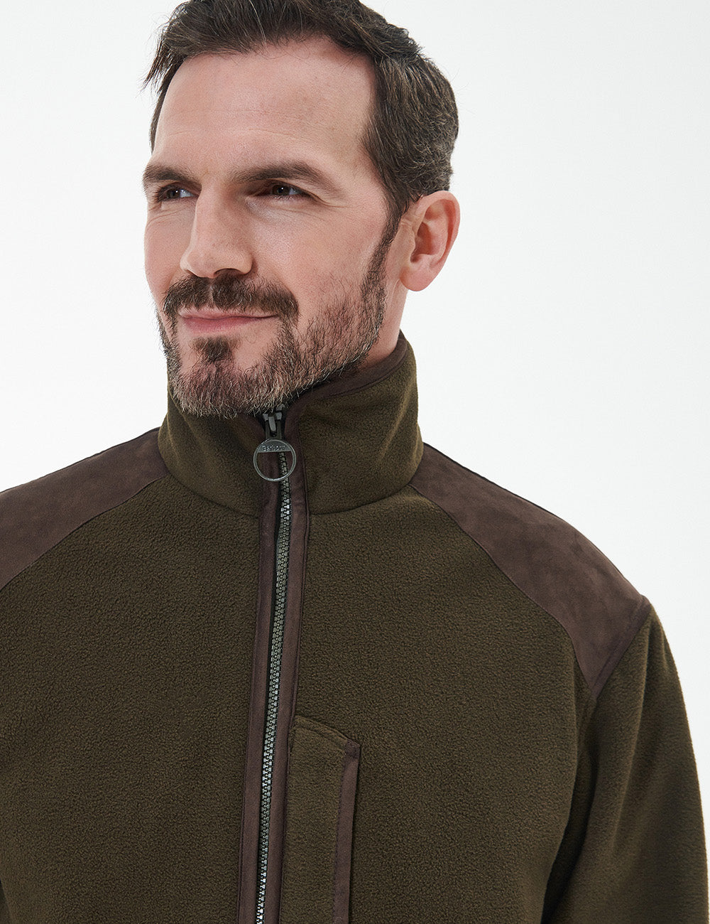 This long sleeve fleece jacket is ready for all your adventures with its stand collar and zip-through fastening. Made with super-soft material and genuine leather trims, this jacket also features country-inspired microfibre shoulder patches and multiple pockets for practicality.
