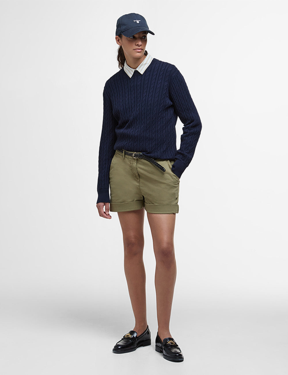 Expertly crafted for warmer weather, these chino shorts are a must-have for any wardrobe. Made from a comfortable cotton blend, these timeless shorts feature front and back pockets, turn-up cuffs and the signature Barbour embroidery. Stay stylish and comfortable all season long.