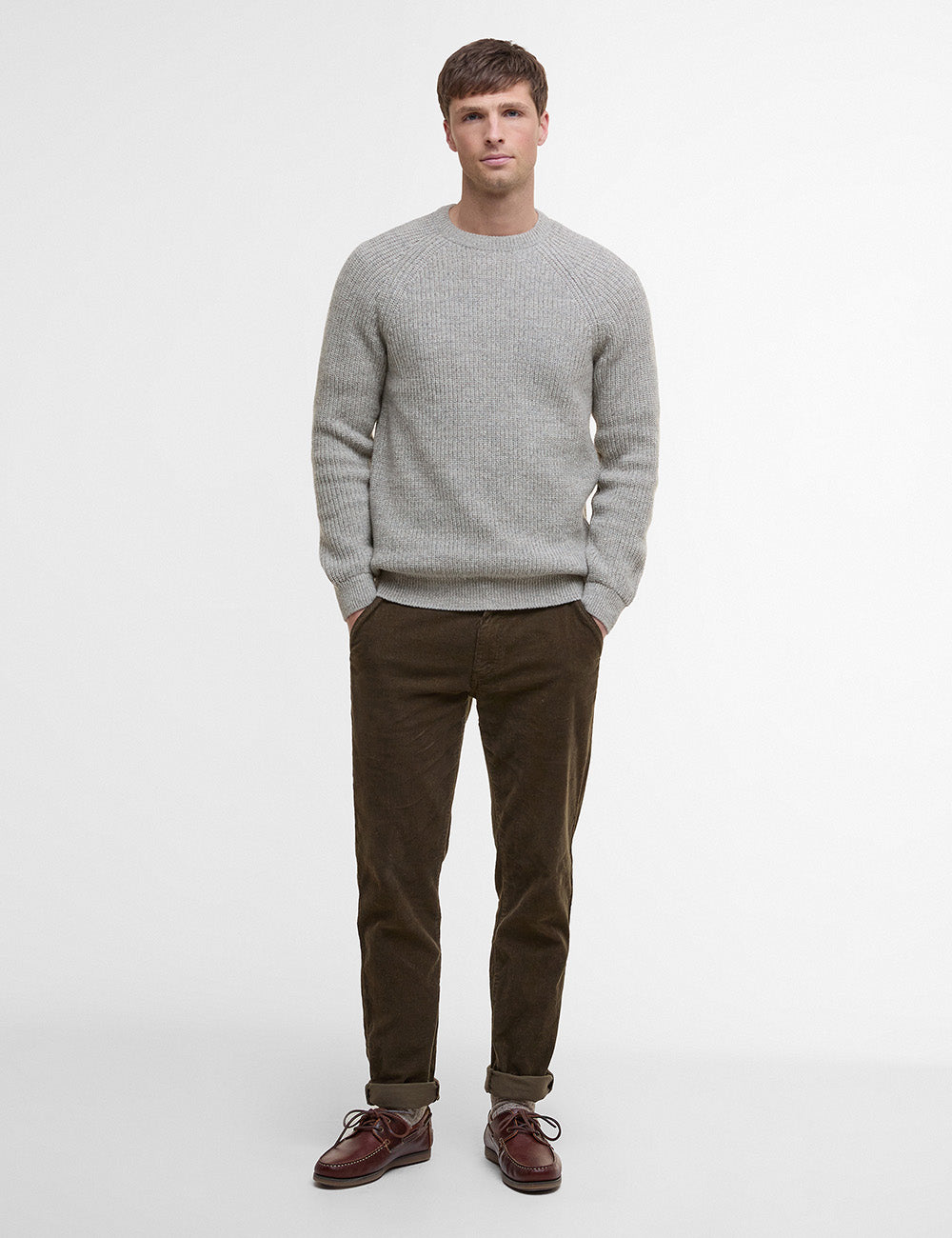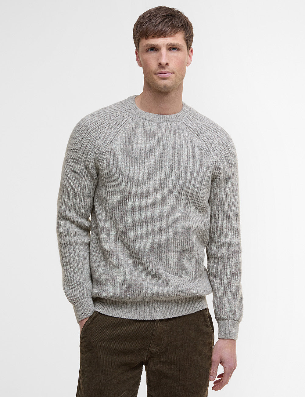 Crafted from soft lambswool in a two-colour twist yarn, this jumper offers an ideal way to layer during transitional months. It’s raglan sleeves let you move comfortably, lending a tailored fit to your look.