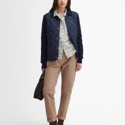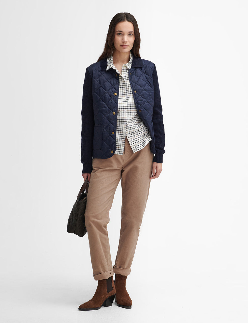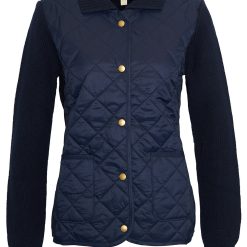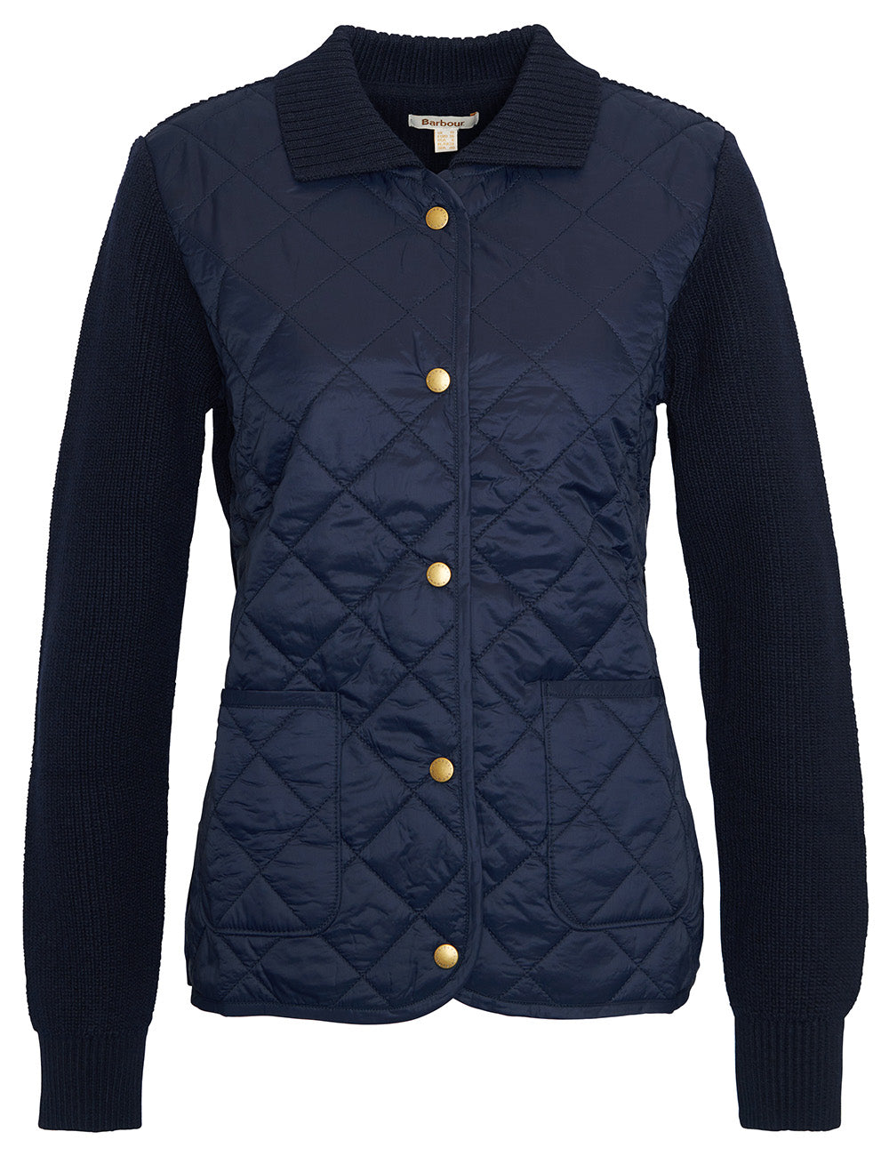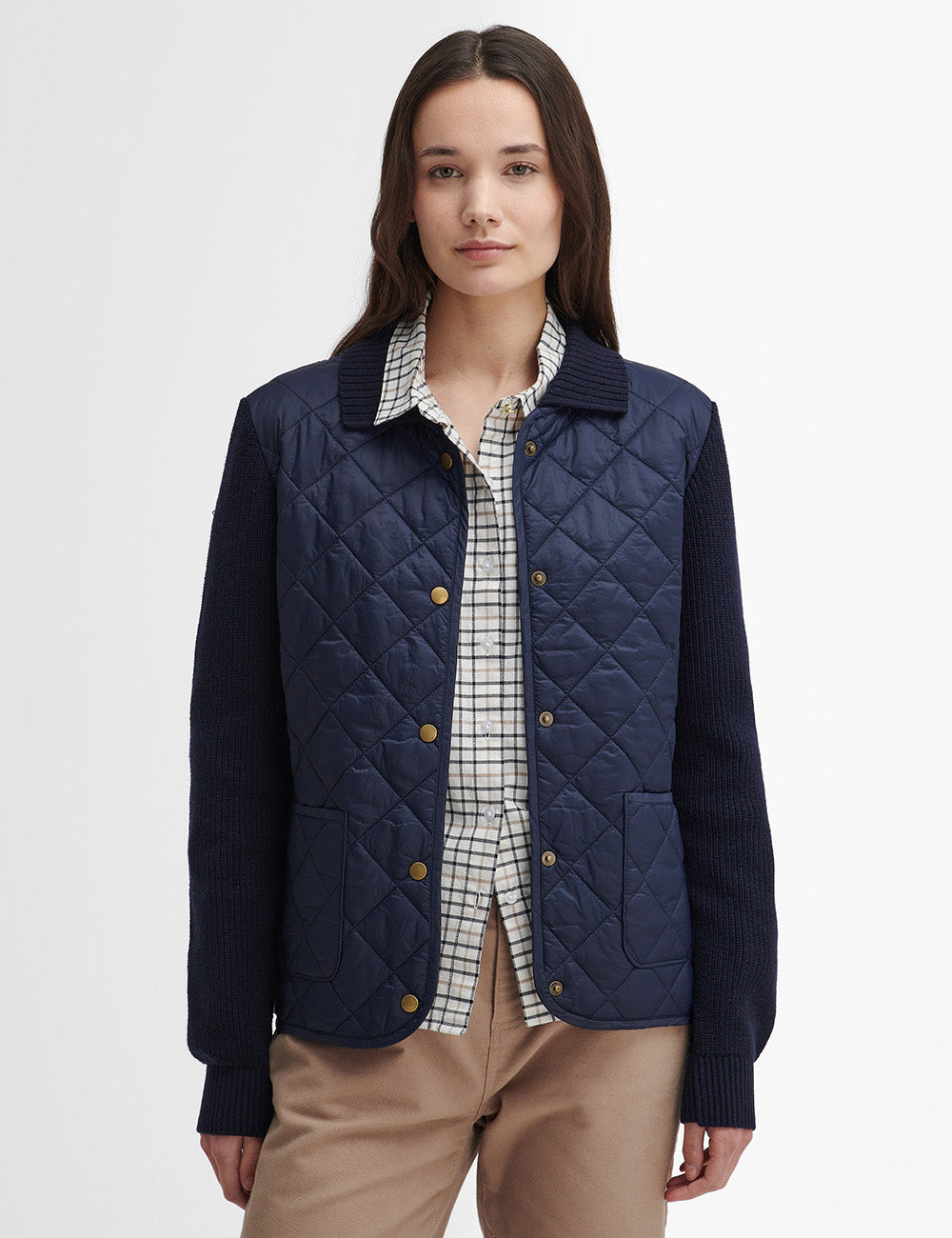 The perfect blend of knitwear and outerwear. With diamond quilting on the bodice and a fine ribbed knit on the sleeves and collar, this charming design is perfect for layering on mild transeasonal days. Stay stylish and comfortable with this versatile wardrobe staple.