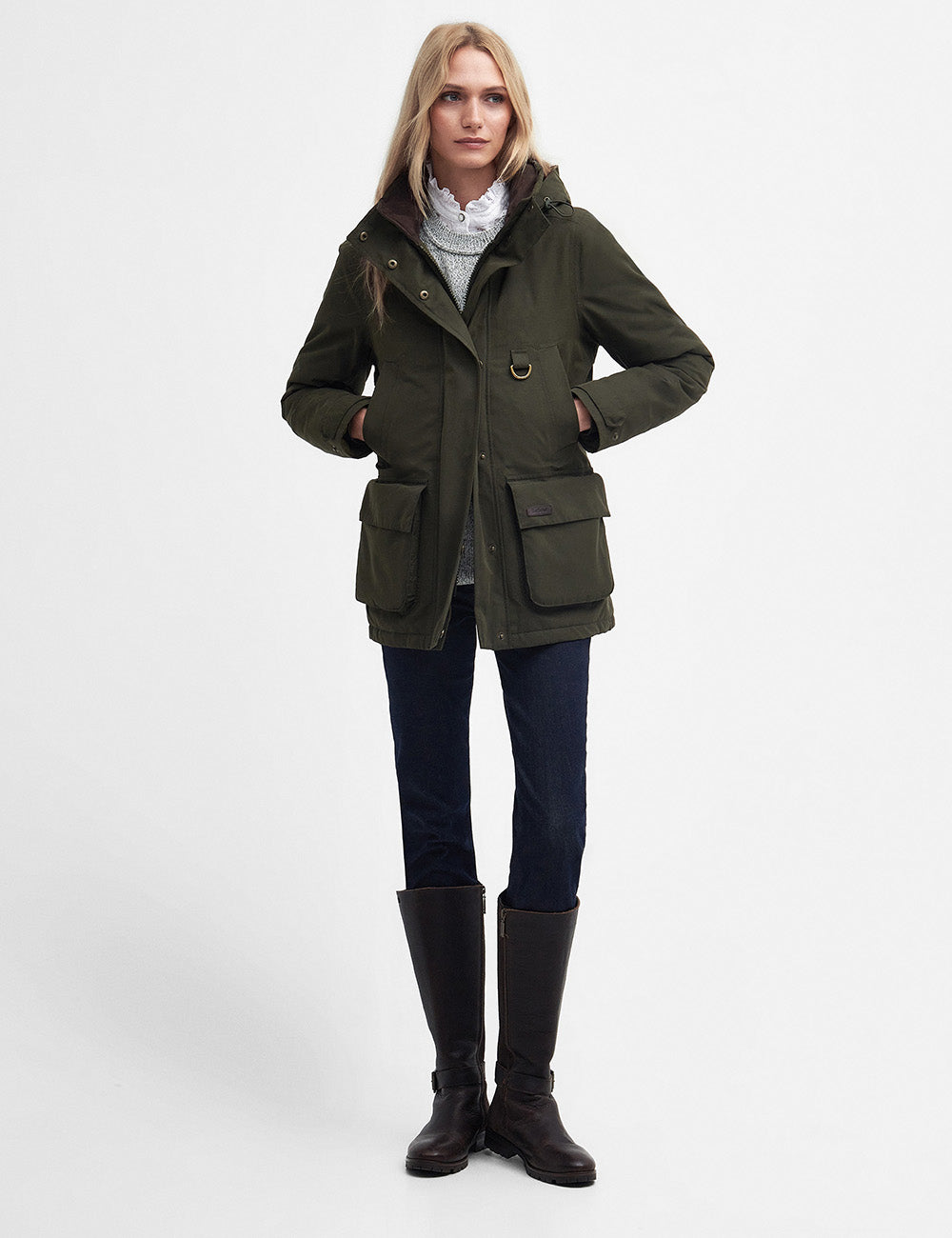 This practical jacket features an adjustable belt adding a flattering silhouette, while the D-ring dog lead attachment allows for hands-free convenience. Stay warm with Thermore insulation and keep essentials close with bellow pockets and removable linings for easy cleaning.