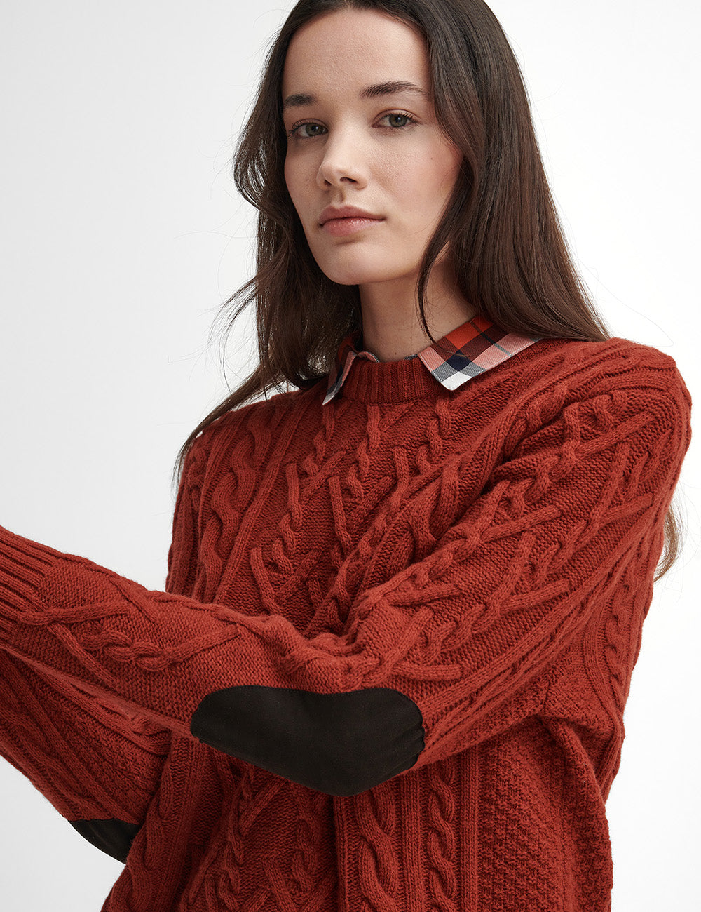 Crafted from a thick wool-blend, this cable-knit jumper offers both style and warmth. With faux-suede elbow patches and ribbed trims, it makes the perfect addition to your countrywear wardrobe for any outdoor pursuit.