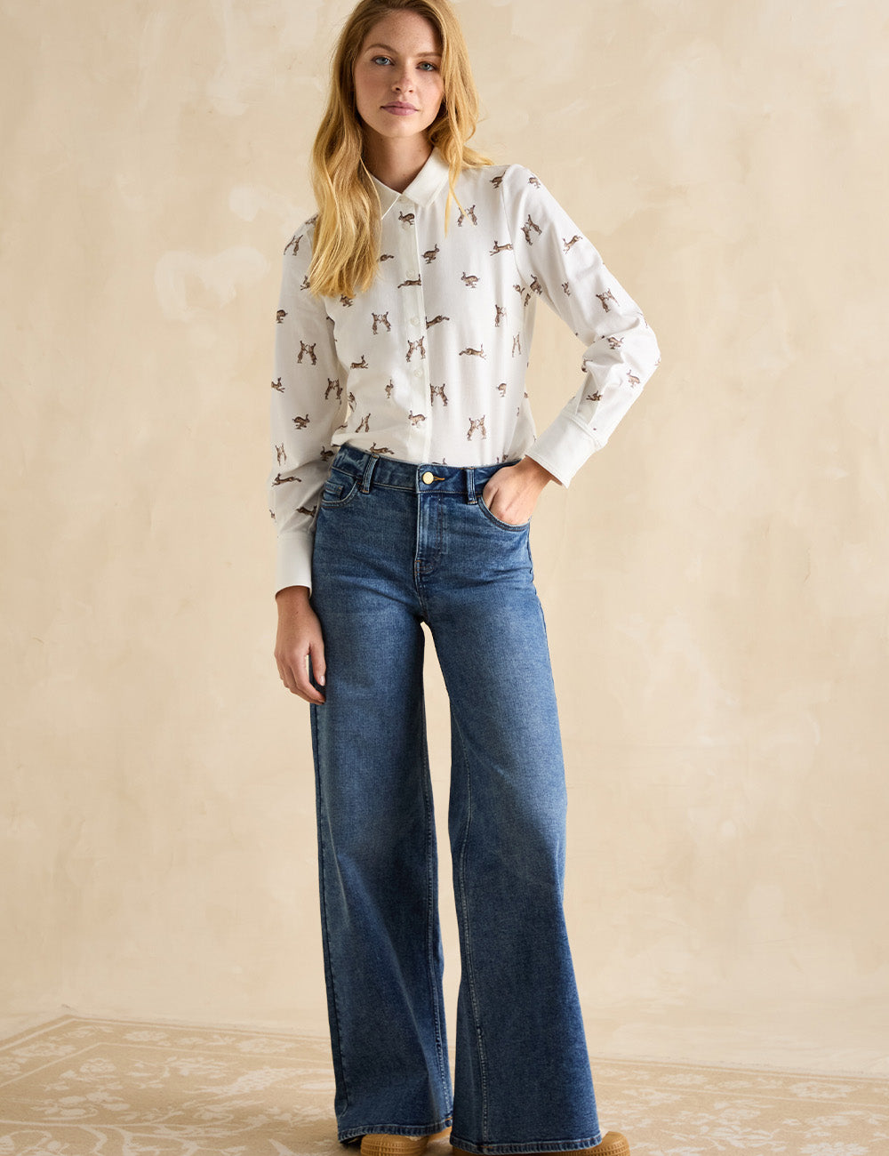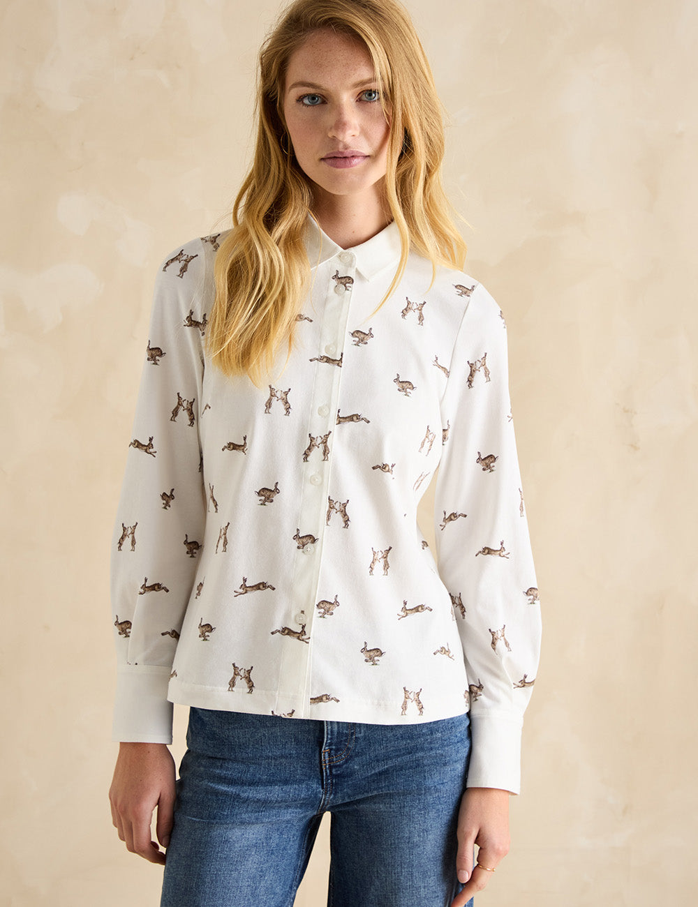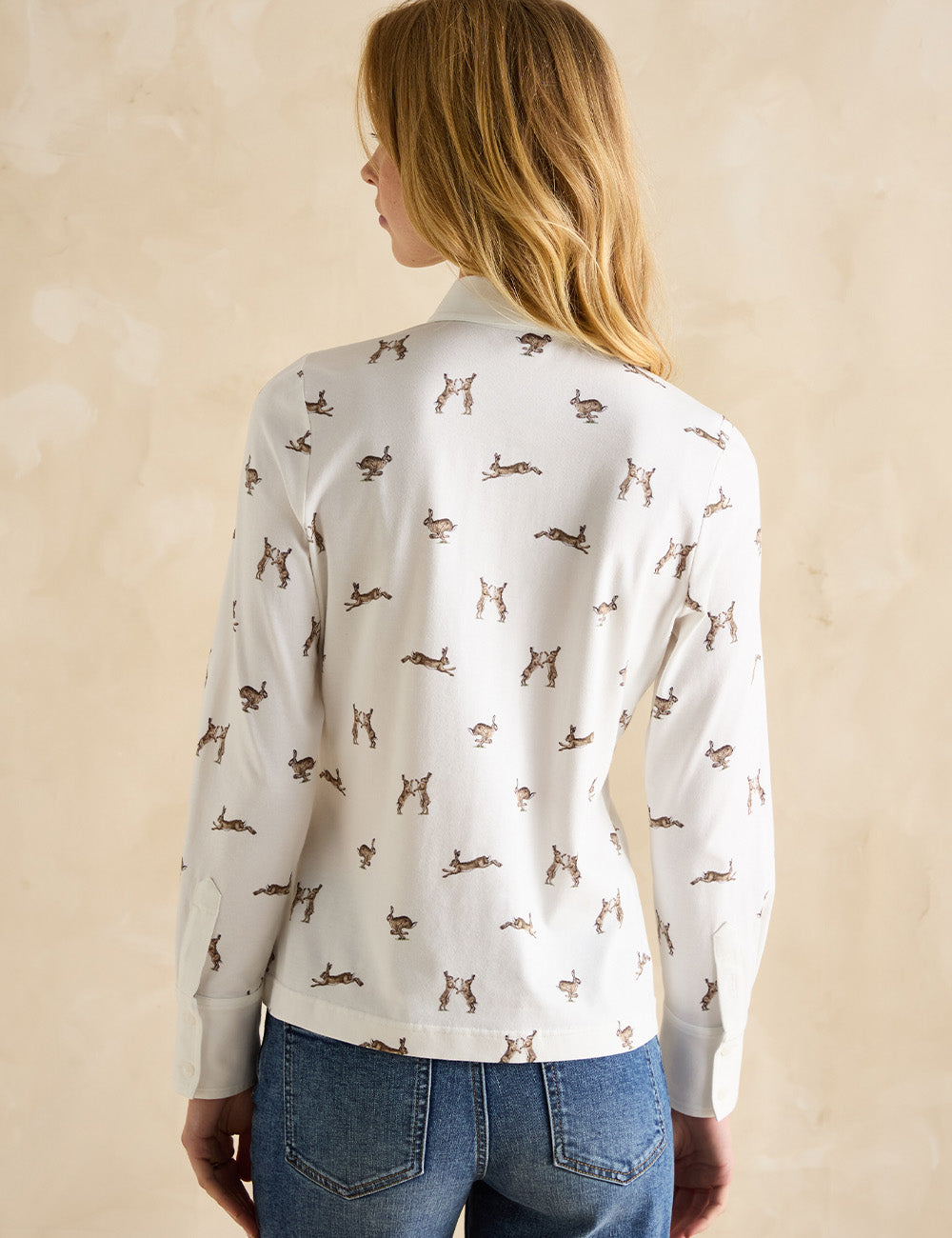 Discover the Burlington Shirt featuring an exclusive hare print designed in collaboration with award-winning artist Eleanor Tomlinson. This limited-edition jersey shirt combines comfort with distinctive country charm, making it a versatile wardrobe staple. Effortlessly style it with jeans and trainers for a casual look or elevate your outfit with a blazer and tweed skirt for a polished finish.