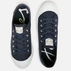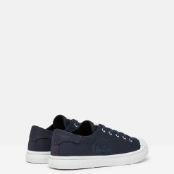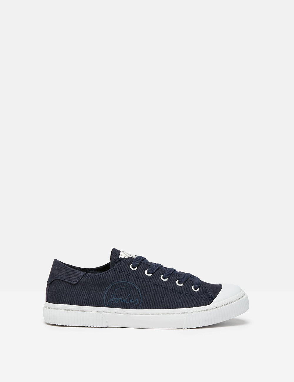 A preppy update to our classic pumps for the warmer seasons. Lightweight and breathable cotton canvas uppers, paired with a white rubber outsole, toe cap and ridged foxing, create a sporty look. With a comfortable fit and Joules branding, these trainers are perfect for the active and stylish.