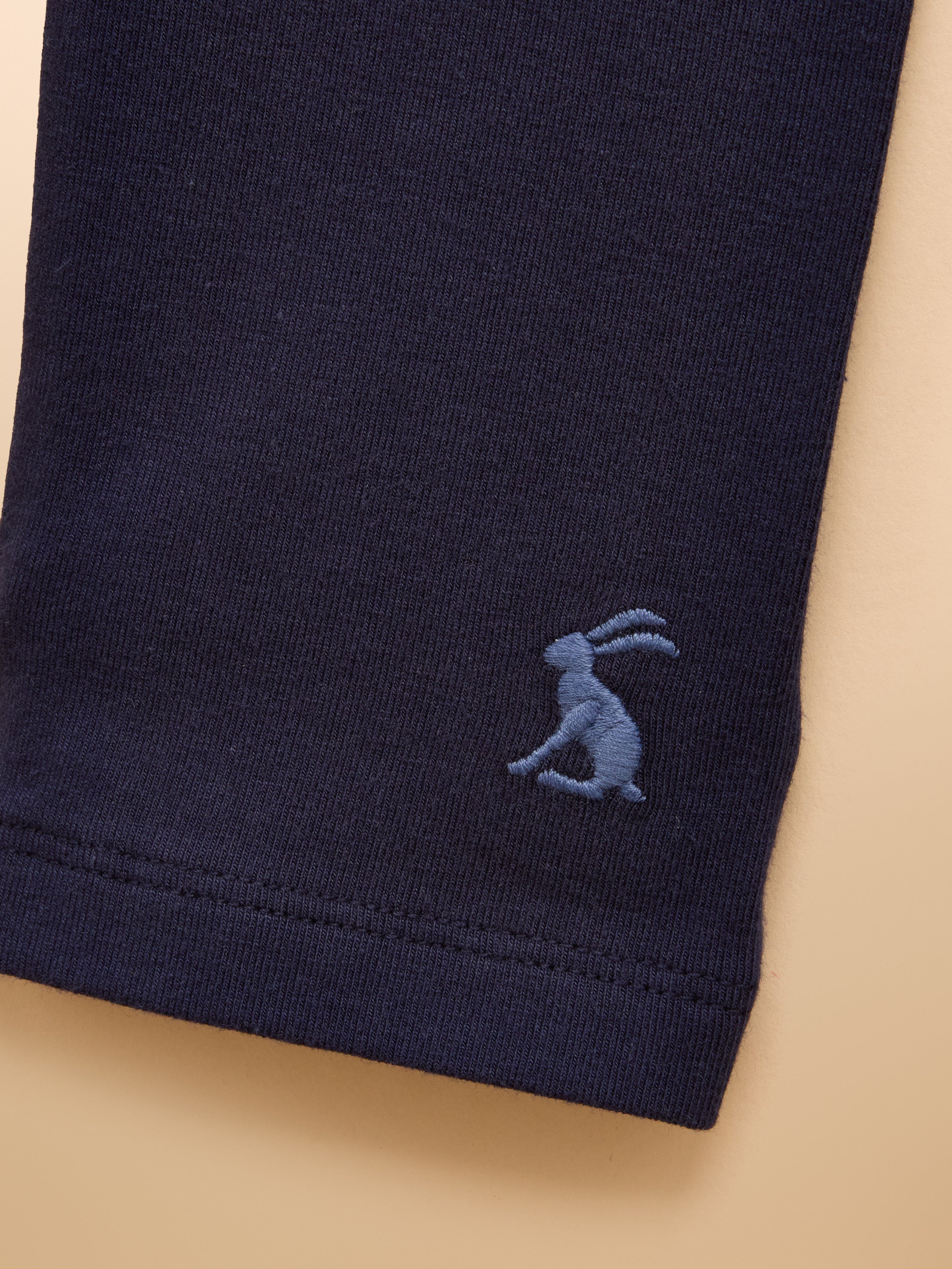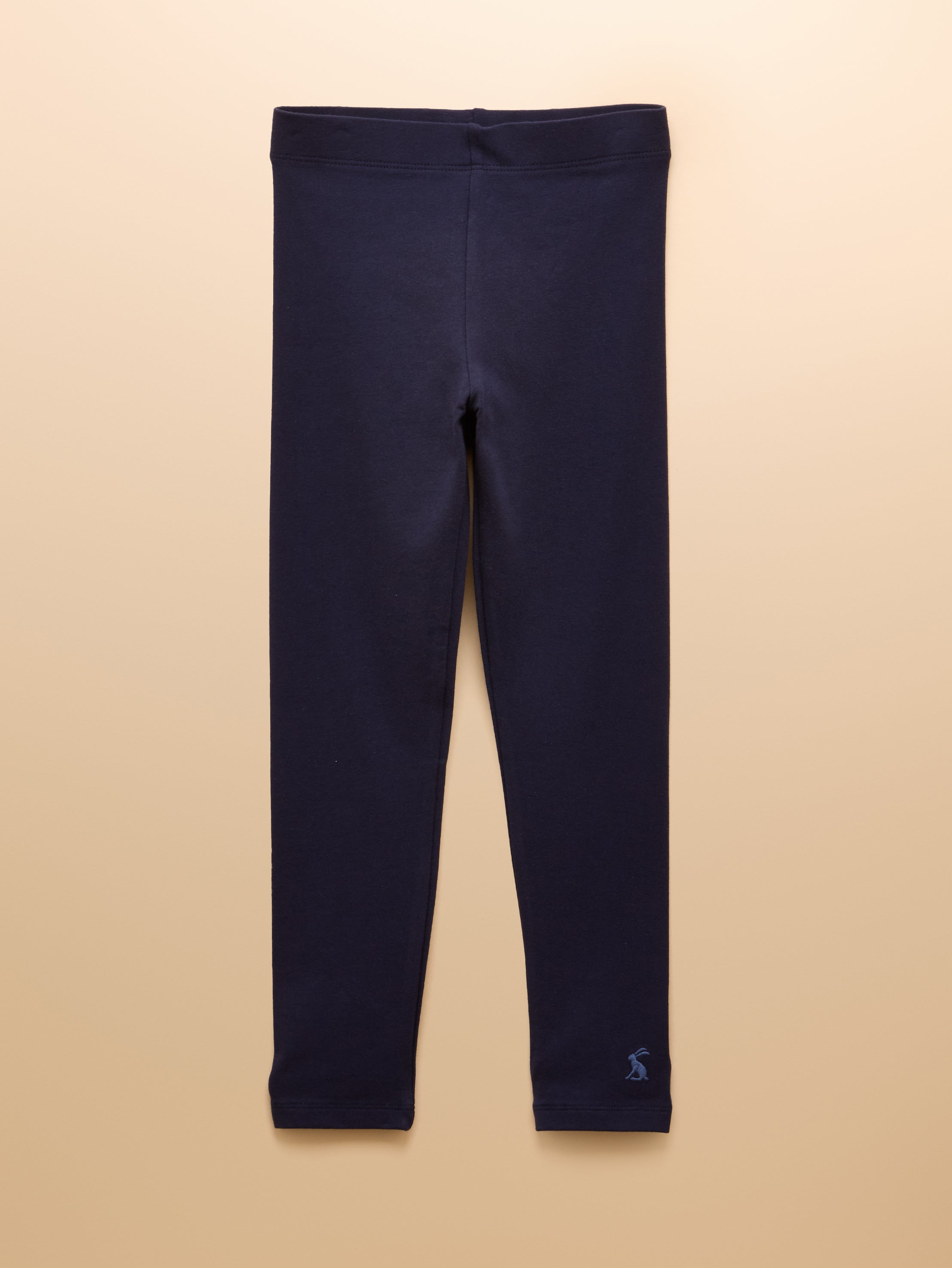 Joules Kids Deedee Leggings in Navy Blue, are play ready leggings in durable jersey with a comfy elasticated waist and slim fit, finished with Joules embroidered hare at the cuff.