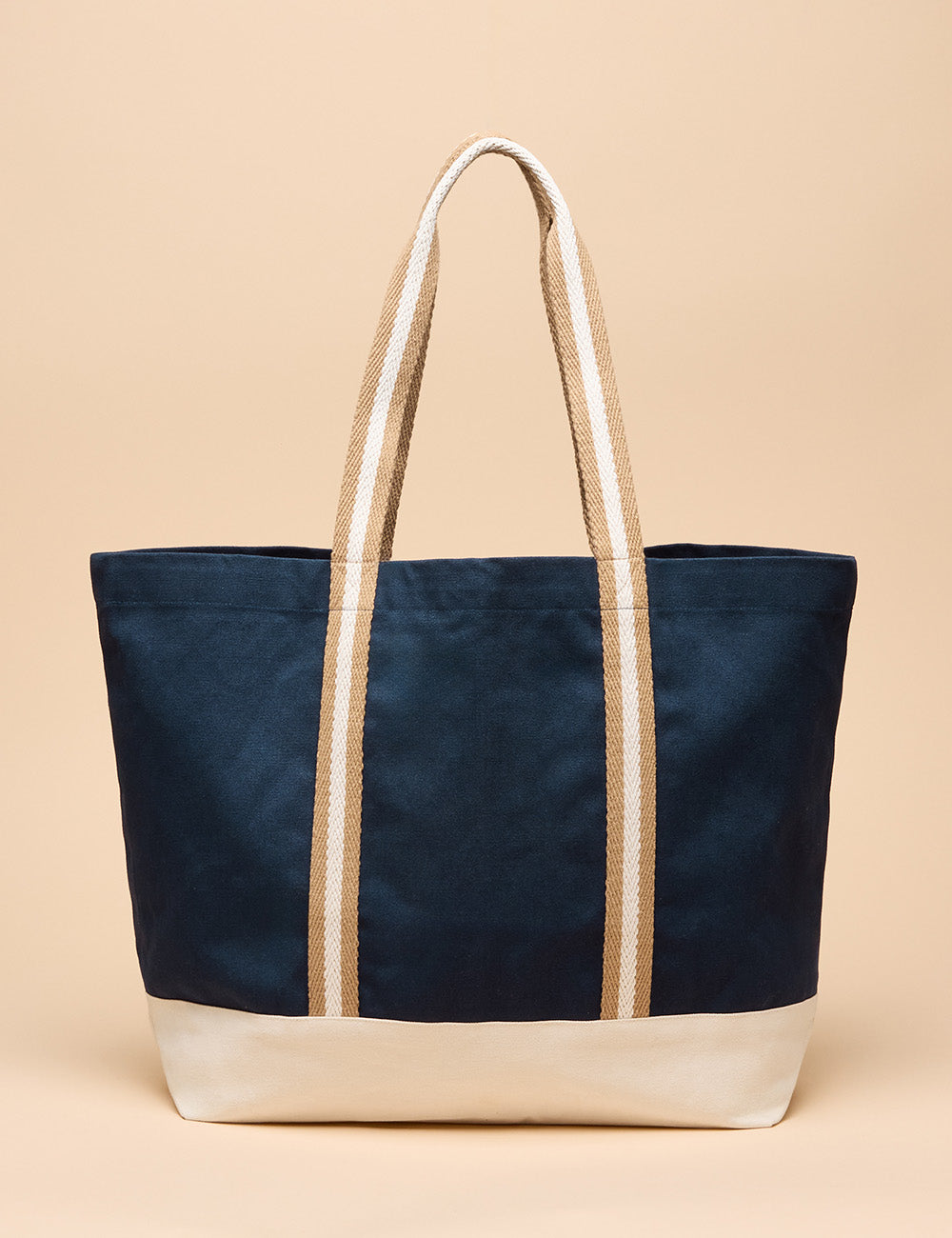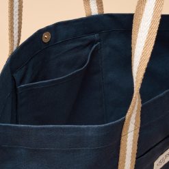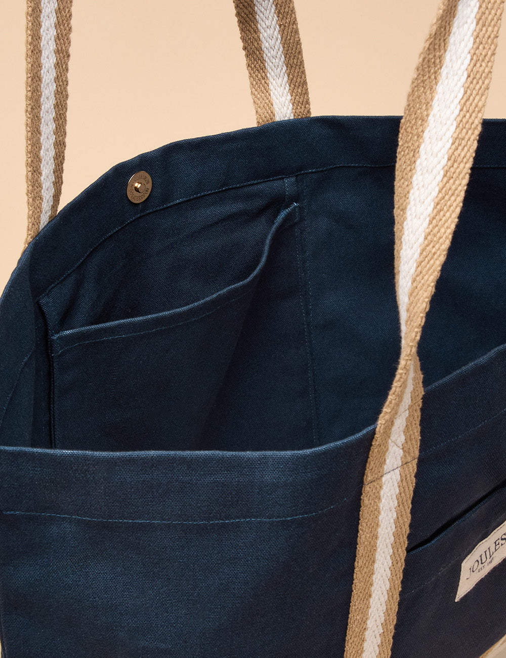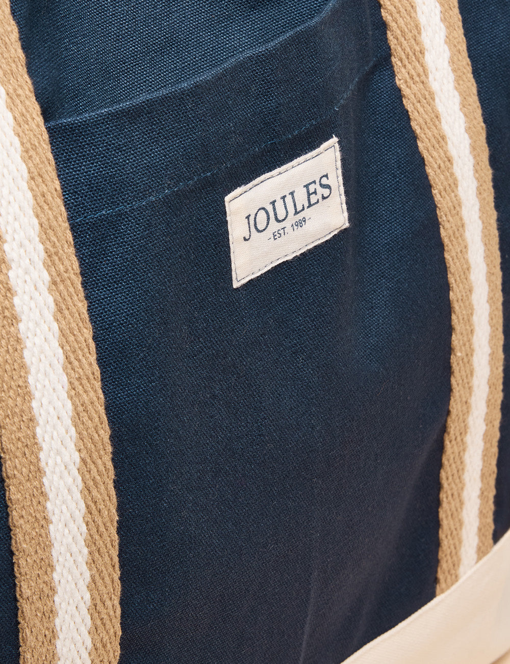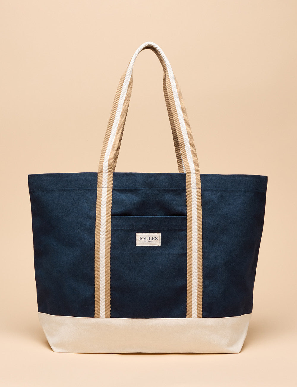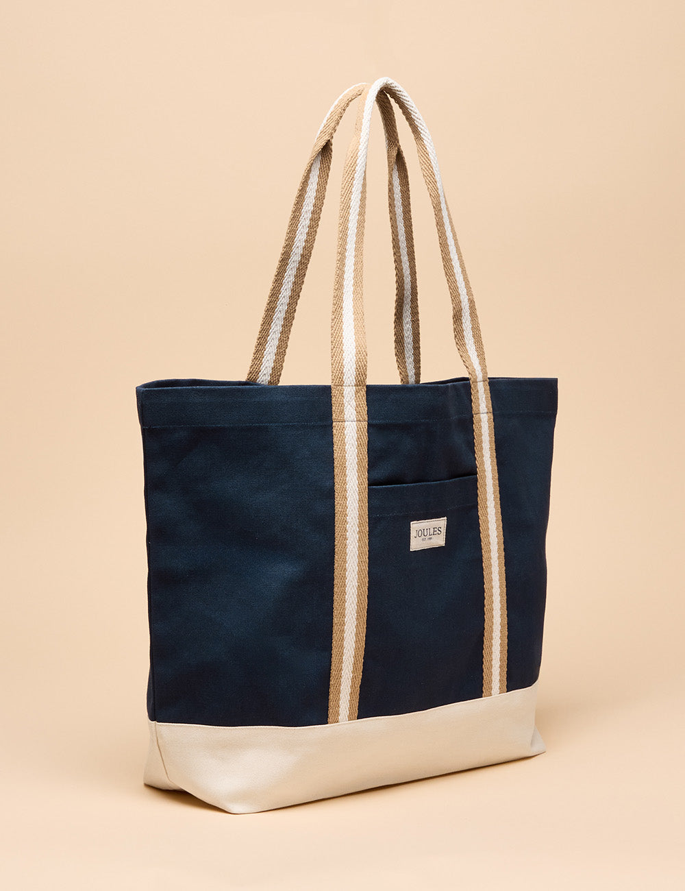 This sizeable beach bag combines durability and style with its hardwearing cotton canvas and versatile neutral tones. Its spacious drop-in design easily holds your towel, book, suncream, and more, while striped webbing shoulder straps provide comfortable carrying. Featuring a contrasting base, a handy front slip-in pocket, and a subtle Joules branded tab, this bag is the perfect companion for effortless summer days by the sea.
