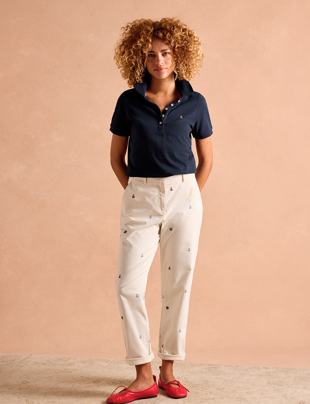 This feminine adaptation of the iconic men’s Woody Polo Shirt combines timeless style with refined details. Crafted from breathable cotton pique in a classic fit, it features contrast trims and delicate embroidery for subtle elegance. Distinctive touches include a branded undercollar, vibrant thread on the buttons, and a signature embroidered hare on the chest.