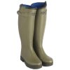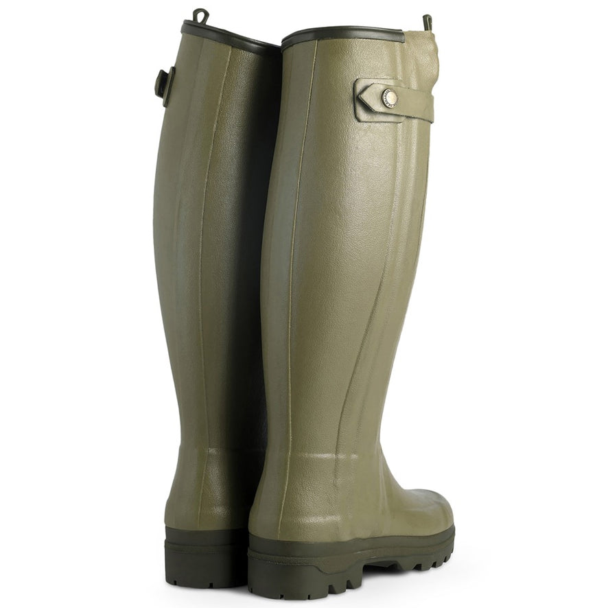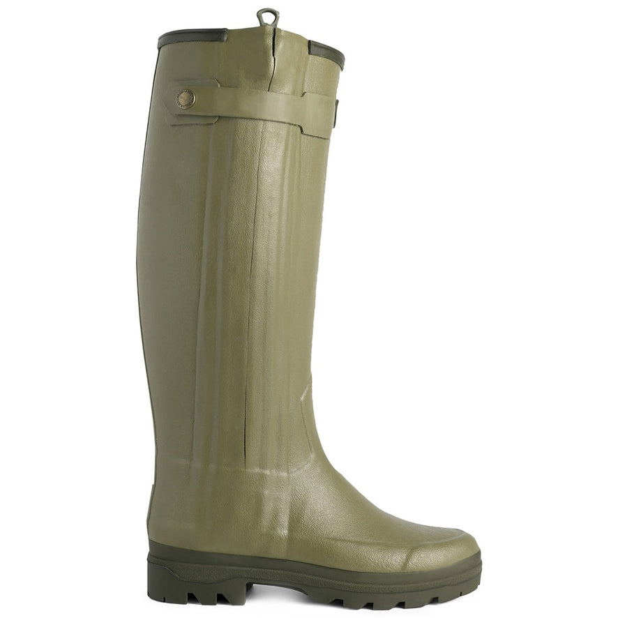 The iconic Le Chameau Chasseur, handcrafted premium 3mm neoprene lined zip wellies. They are?instantly recognisable. Specially designed to fit women’s feet and legs. Aramid fibre?reinforcement to the front for extra protection against abrasion, rugged waterproof Riri Aquazip and snap button for fastening. Insulating 3mm neoprene lining and shock-absorbing, insulating, all-terrain sole with reinforced shank for improved arch support.