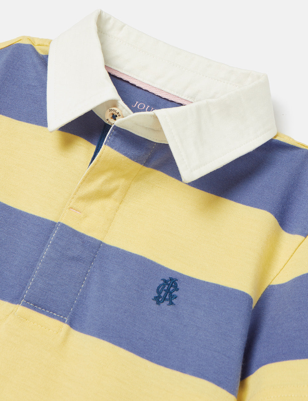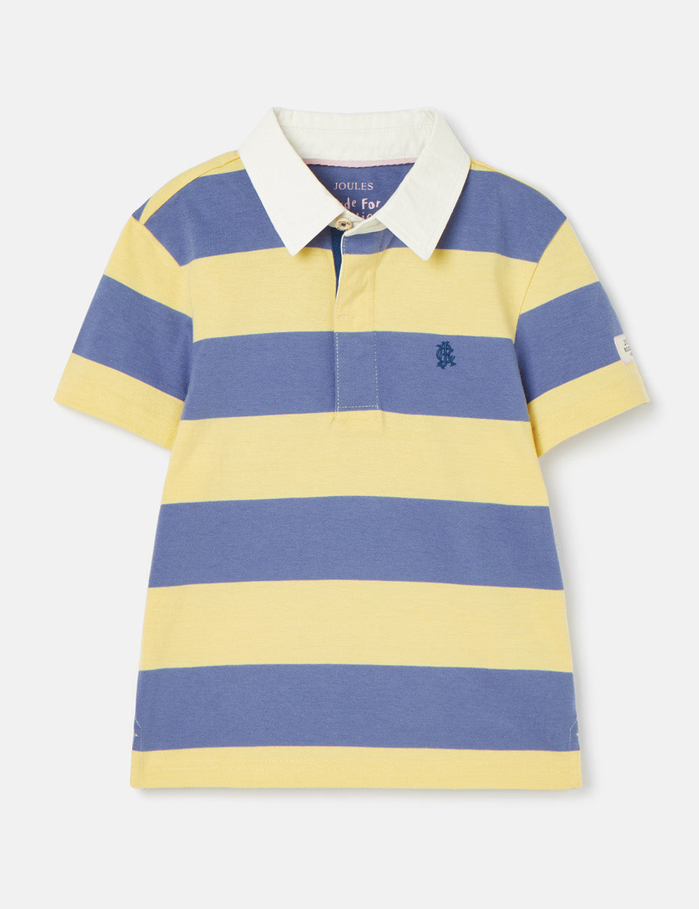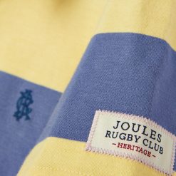 This striped polo shirt is made from quality jersey material and features a classic striped pattern along with a twill collar and side splits for added style and comfort. The shirt also includes a button placket and Joules embroidered hare on the chest.