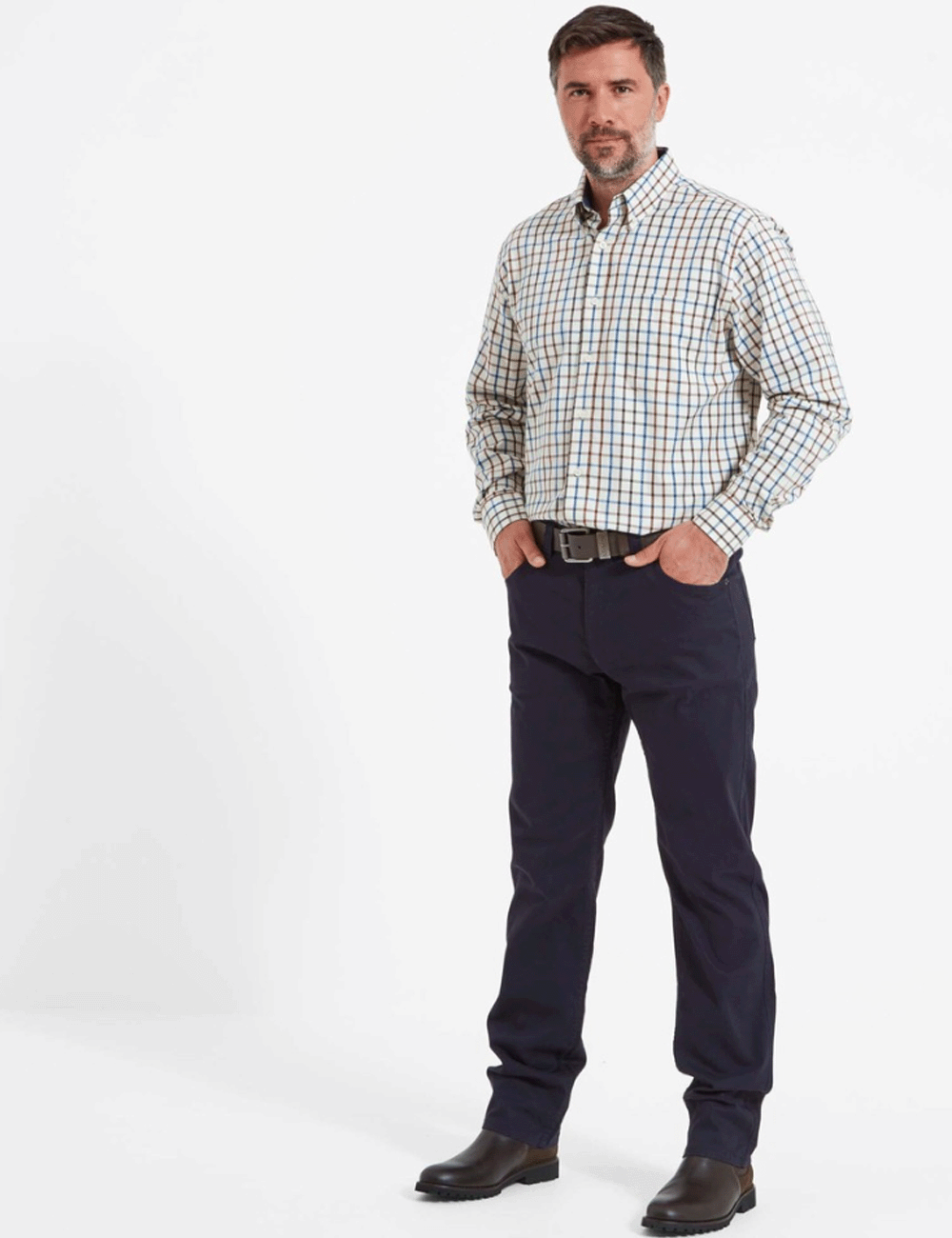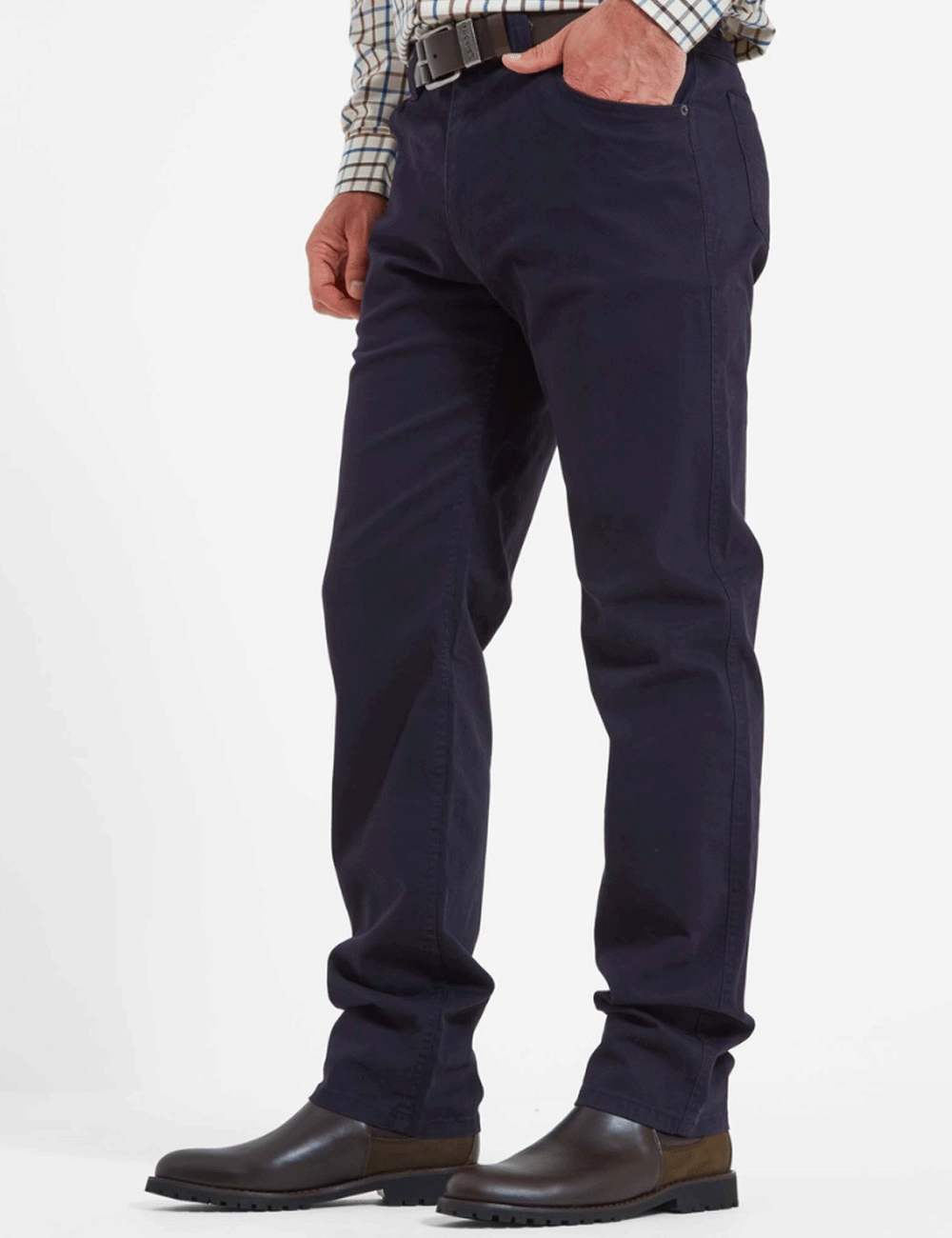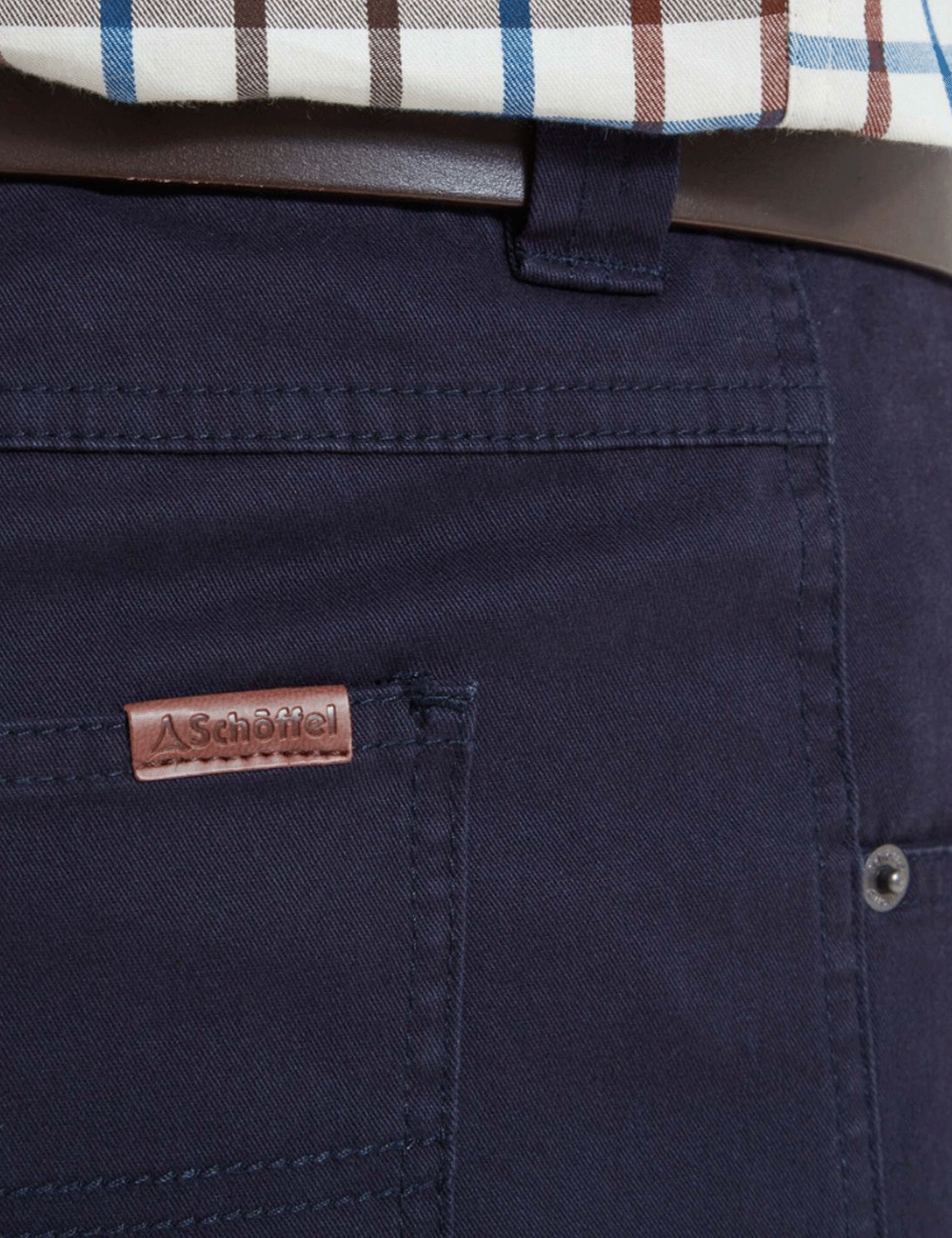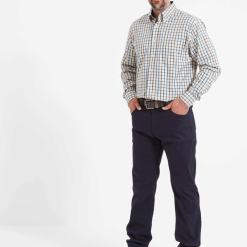 Take on a smart, timeless look with the classic Canterbury 5 Pocket Jean. Crafted from a stretch cotton blend, these trousers feature Schoffel branded buttons and leather branding on the rear waistband.