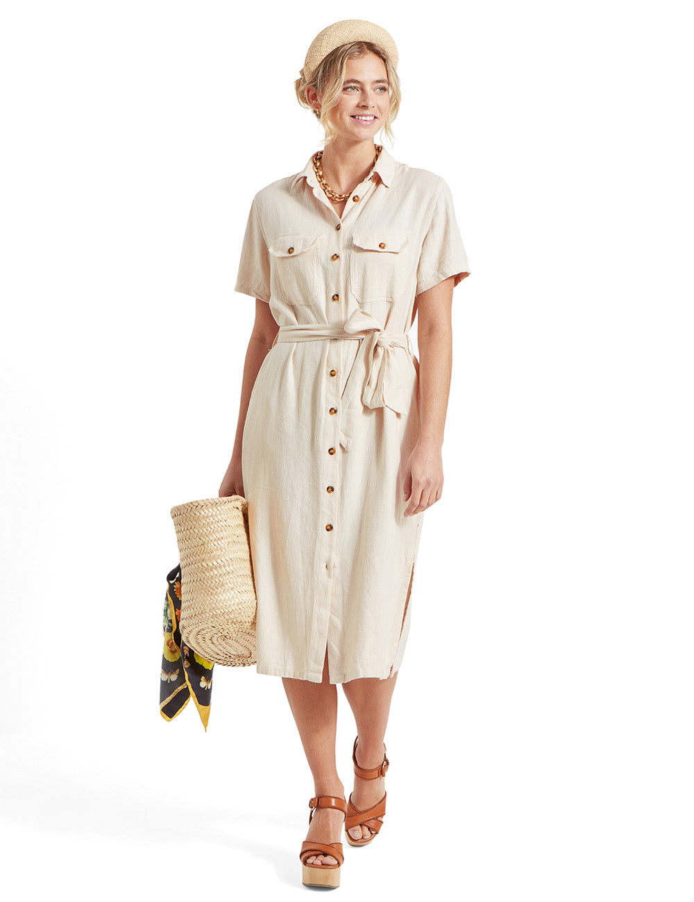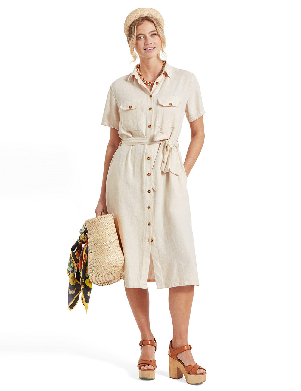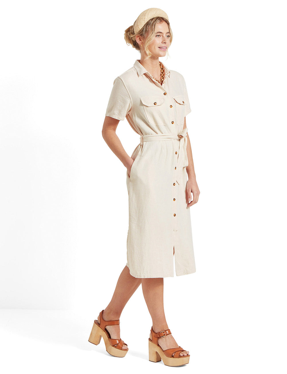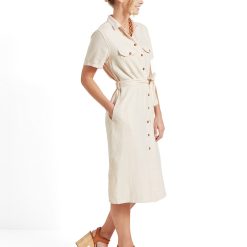 Featuring double top and side pockets, contrasting buttons, and a matching tie belt to cinch the waist, this dress offers both style and comfort. Perfect for any occasion, this piece will elevate your wardrobe with its touch of sophistication.