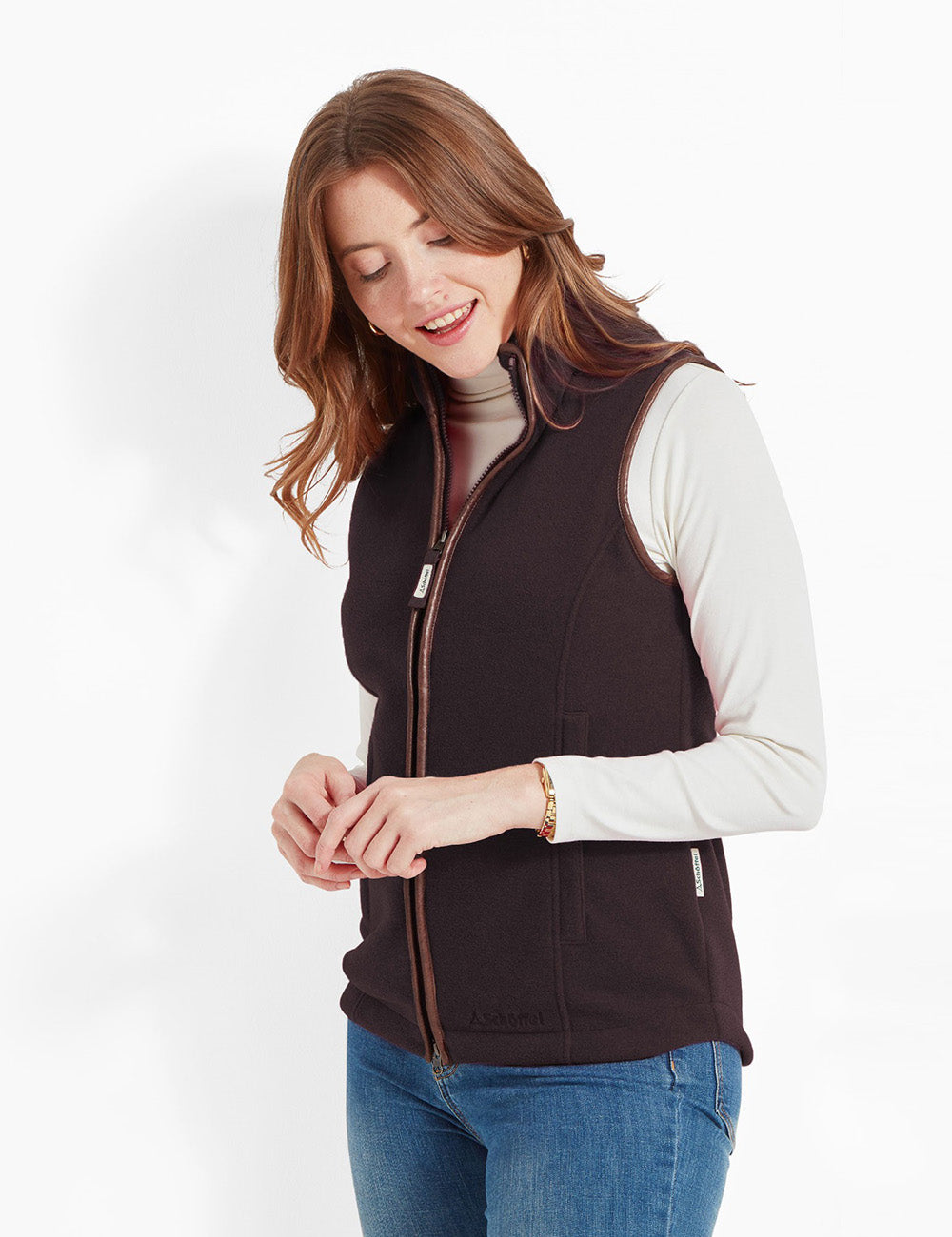Schoffel’s classic bestselling women’s fleece in the iconic new Port. Featuring the signature Schoffel trim, this essential piece is crafted from premium?fleece?and boasts a half drawcord at the back of the waist for a sleeker fit. Iconic and stylish, the Lyndon Fleece is the wardrobe classic?country gilet.