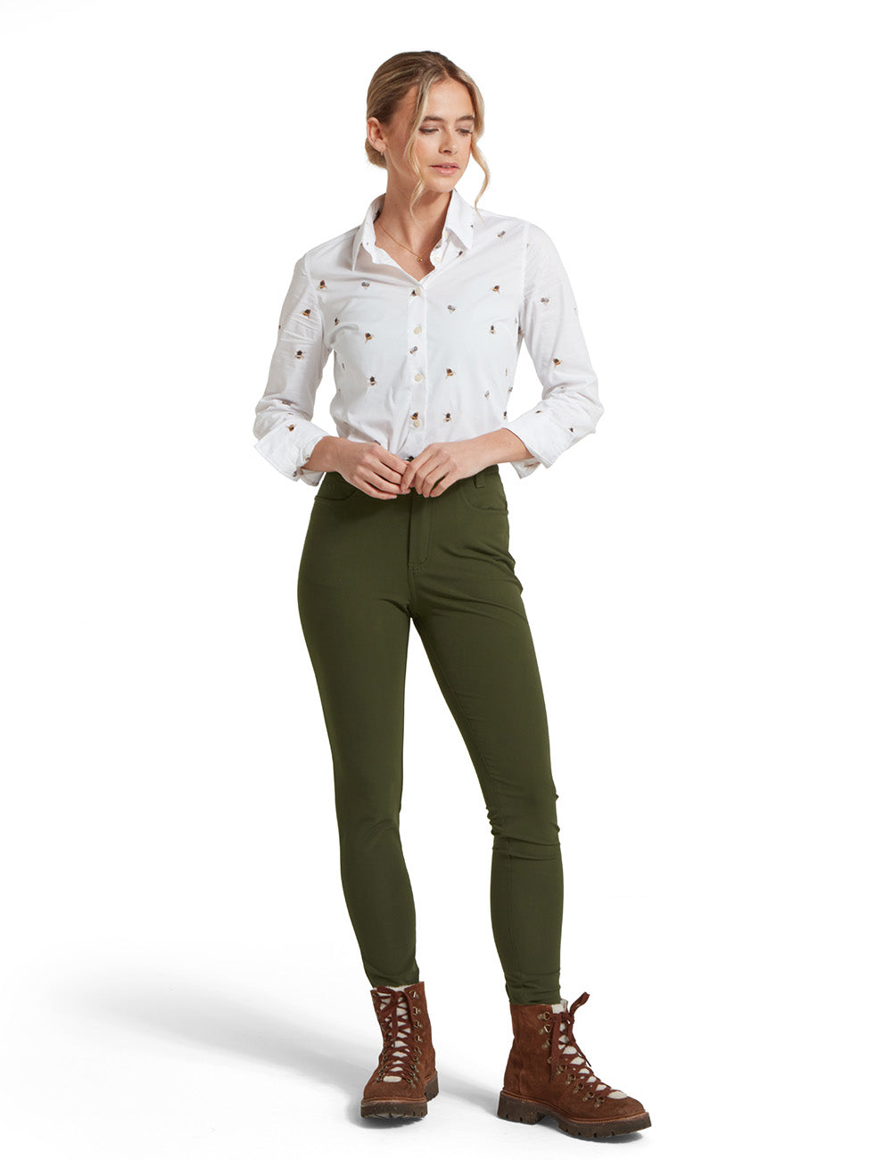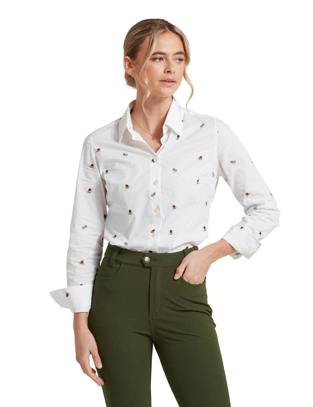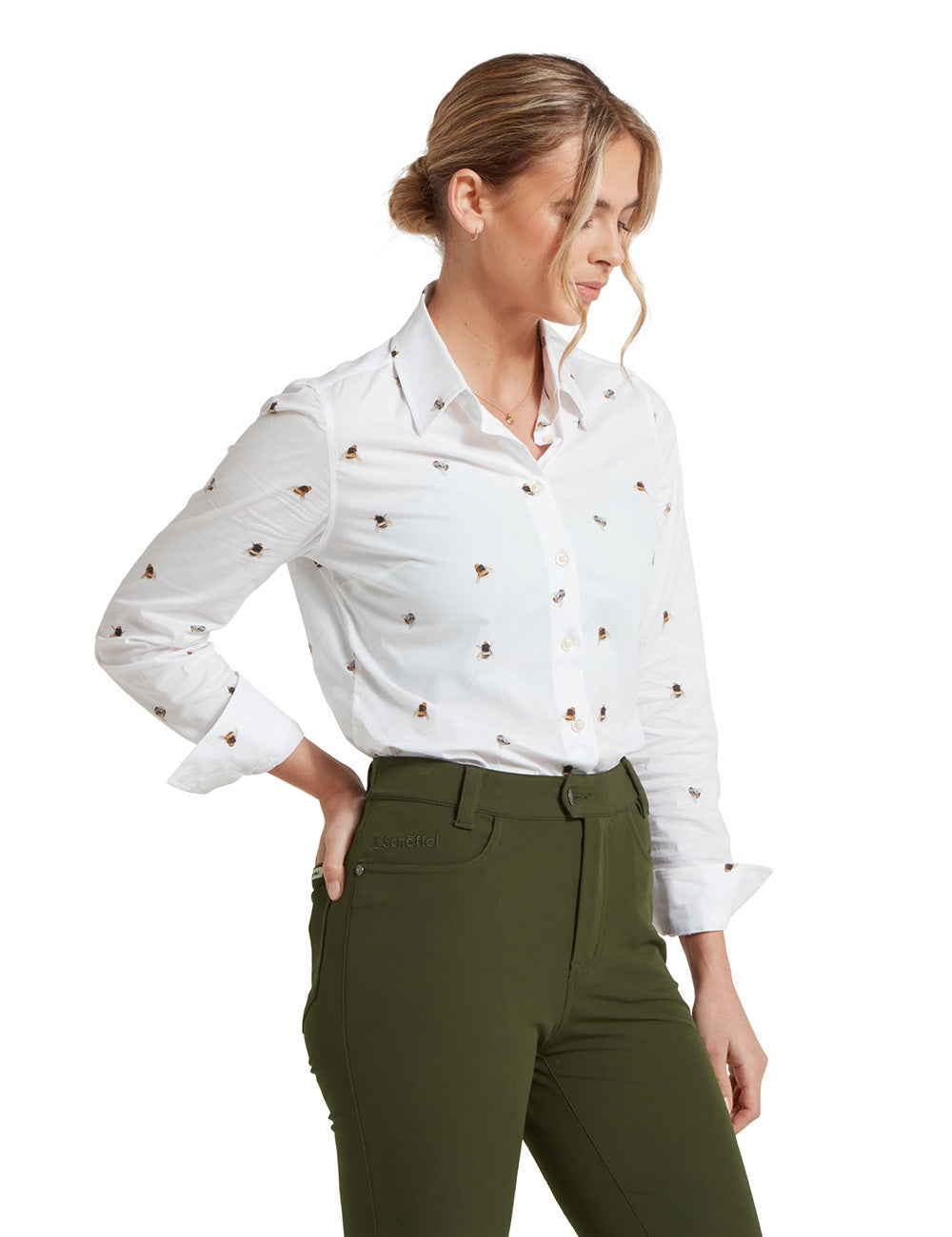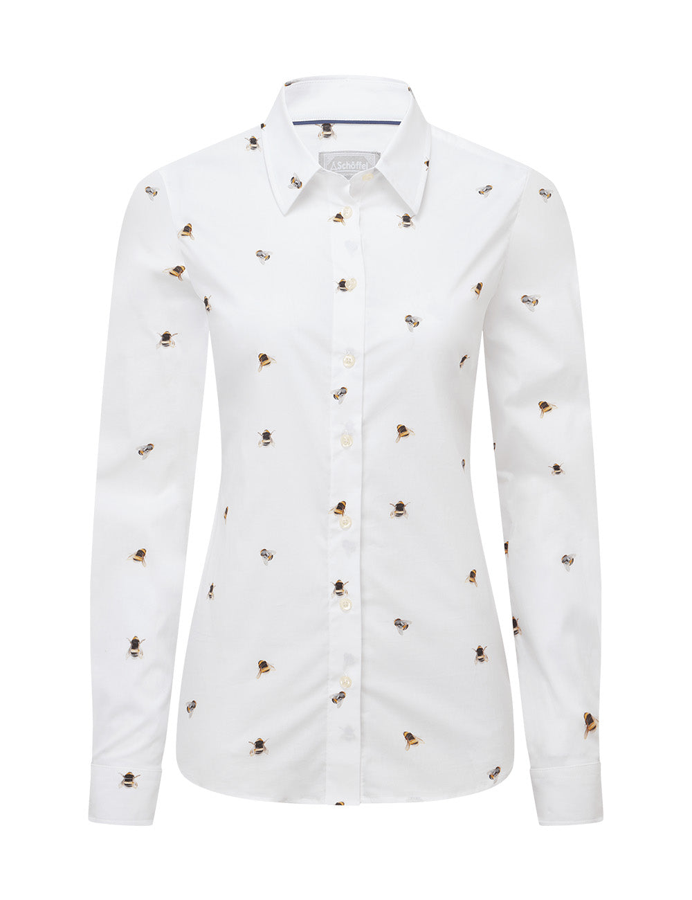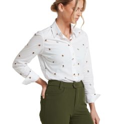 Cut with a shape flattering contemporary fit from a beautifully crisp cotton, the Schoffel Norfolk Shirt is the perfect everyday shirt. Designed slightly looser than the traditional tailored fit shirt, the contemporary style allows for a feminine shape while sporting a classic all over bee print.